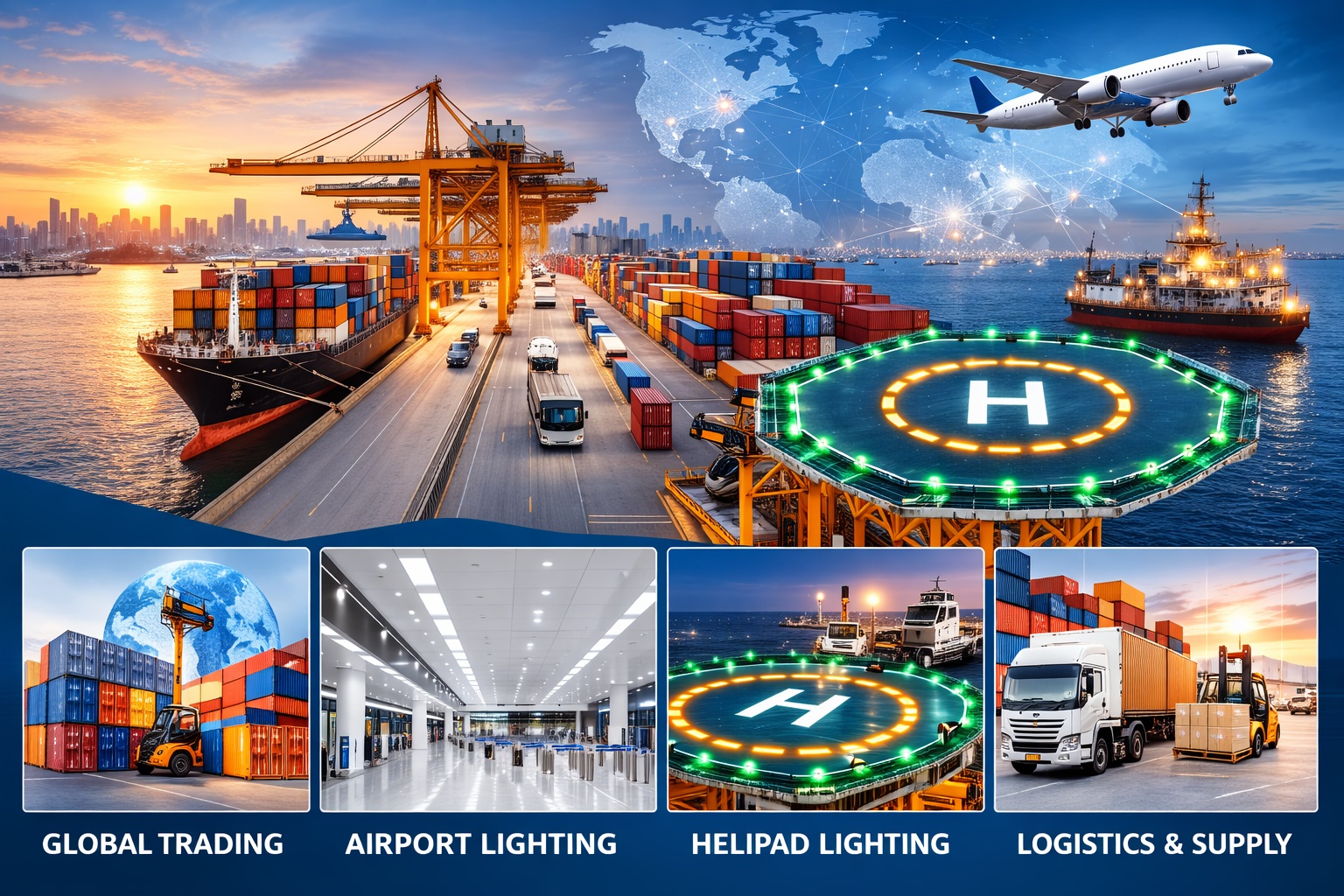 GMT TRADING FZ LLC is a dynamic international trading company committed to delivering high-quality products and reliable solutions to global markets. The company specializes in international trade, infrastructure solutions, and advanced lighting systems for aviation, marine, and commercial sectors. With a strong global network of manufacturers and suppliers, GMT TRADING FZ LLC connects businesses with trusted products and efficient supply chains. The company focuses on providing innovative and energy-efficient solutions including airport lighting systems, helipad lighting, industrial lighting, and other specialized infrastructure equipment.